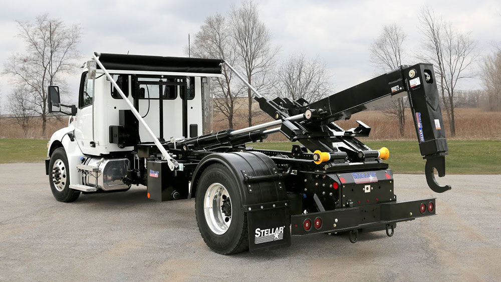 Stellar hooklift systems are built for versatile hauling operations, delivering dependable performance and efficient container handling on the job.